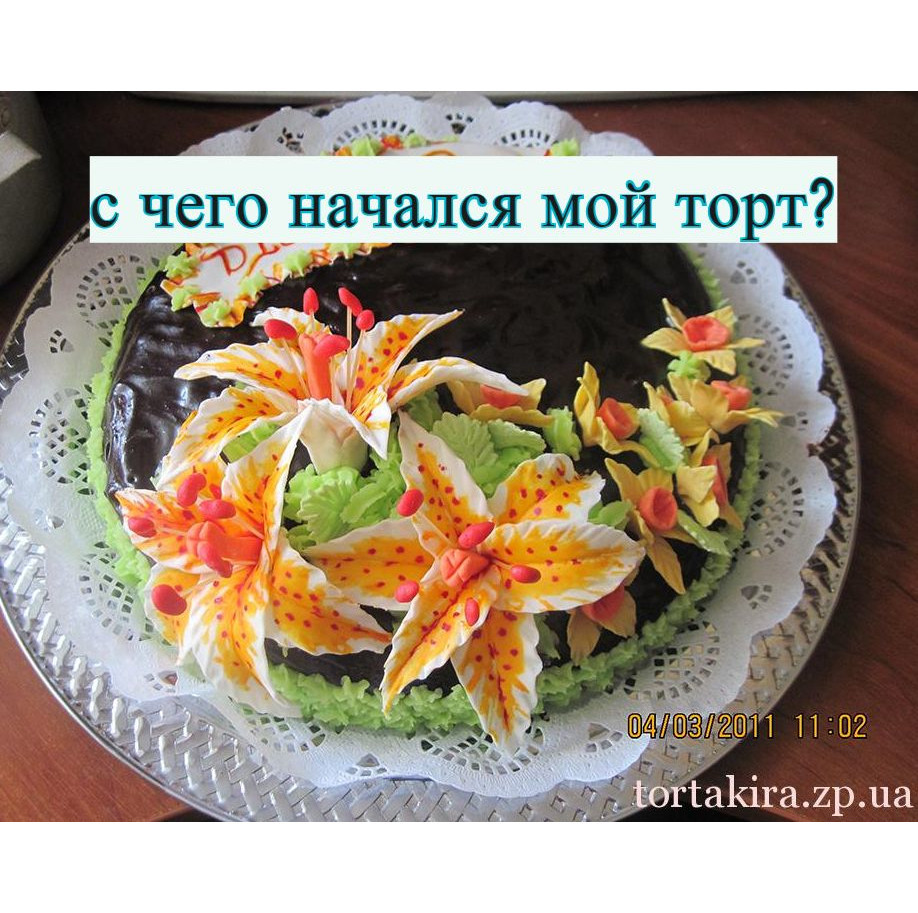 Це був далекий 2011 рік (4 березня, якраз був чудовий привід — 8 березня)… Я приготувала свій перший торт з чудовими ліліями для своїх близьких і рідних.