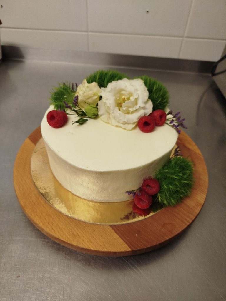 Торт з малиною та білим шоколадом